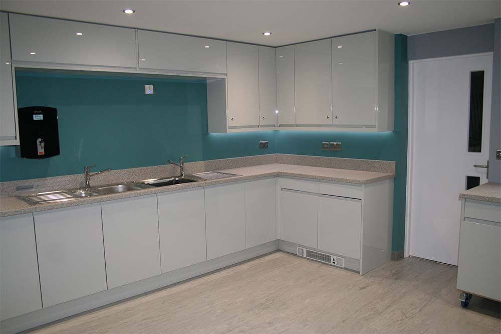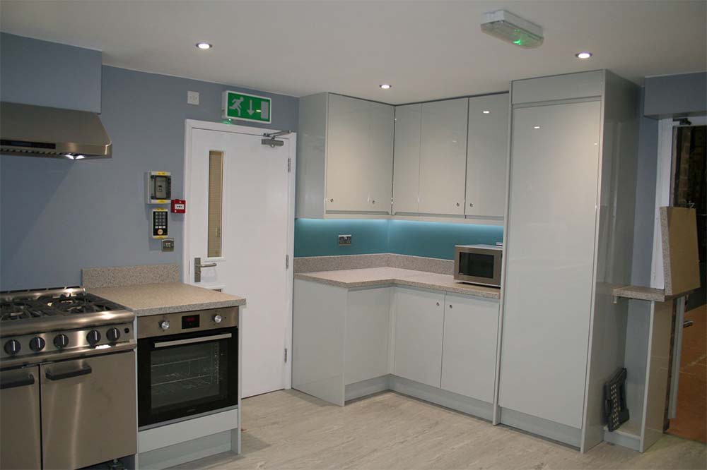 It has a large hatch which allows serving food and drink directly into the Hall very convenient. It also has direct access through to the Lounge. Lockable cupboards are available for regular users.